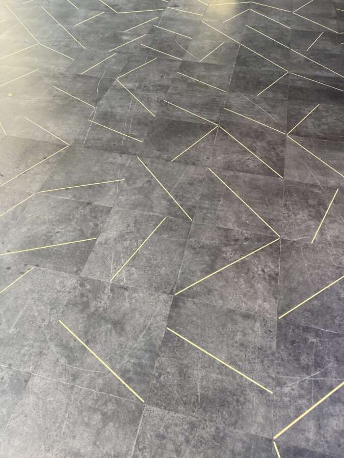 Removing scratches from LVT is a difficult, time consuming, expensive process, you have to cut the synthetic floor down enough for the scratches to blend in using specialist cutting disks, this process is normally quite messy, dusty and isn’t ideal for a new restaurant-bar opening up in the next two days. Plus with the floor being brand new we wanted to avoid the full restoration route leading us to recommend the customer to go down the strip and seal route.