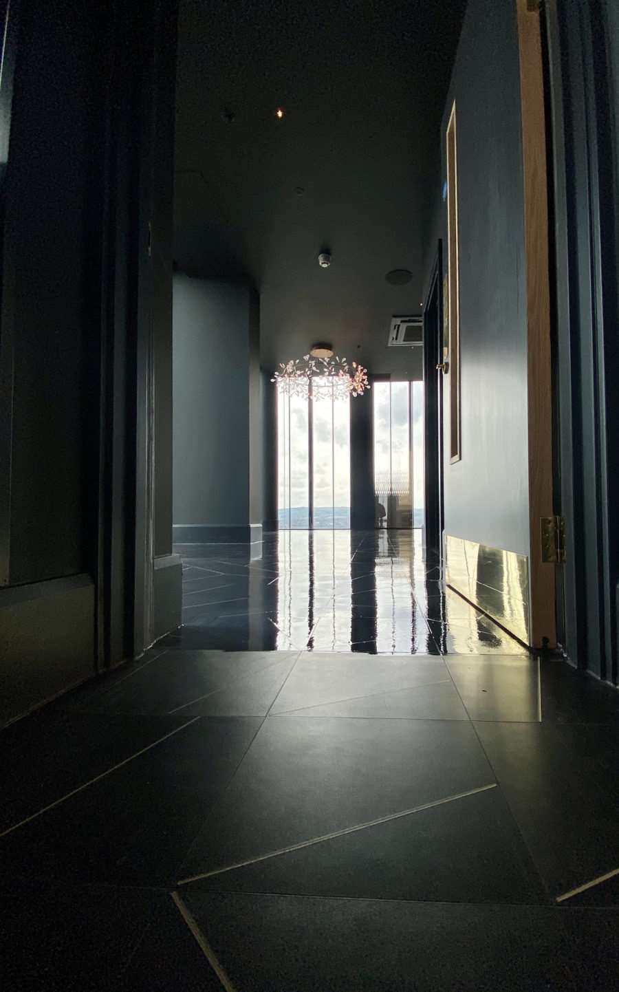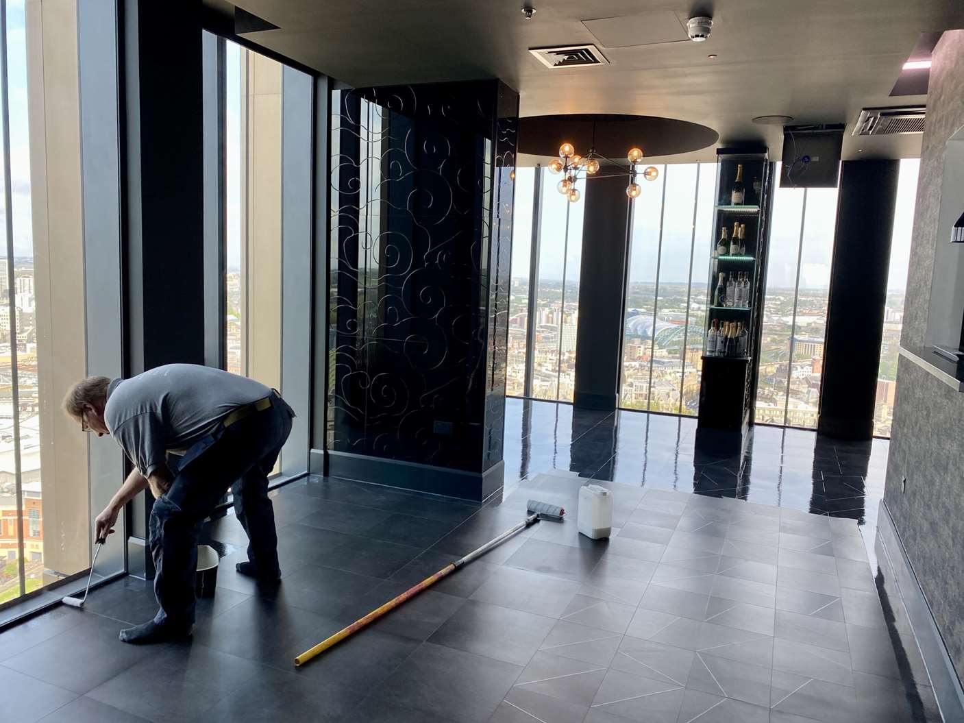 They had a beautiful mat black and gold Karndean floor installed to give the place a seriously slick look, sadly during the installation, some areas of the floor were badly scratched, this is common, normally happens when new furniture gets installed and they drag them across the new floor etc.