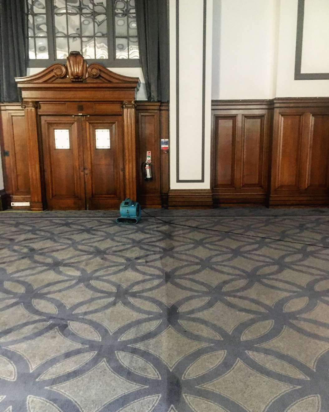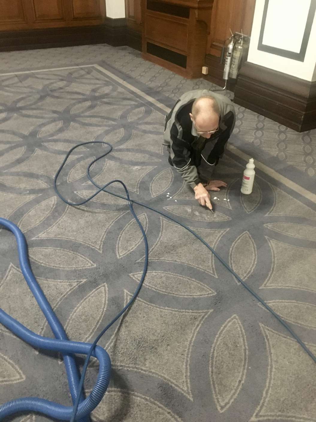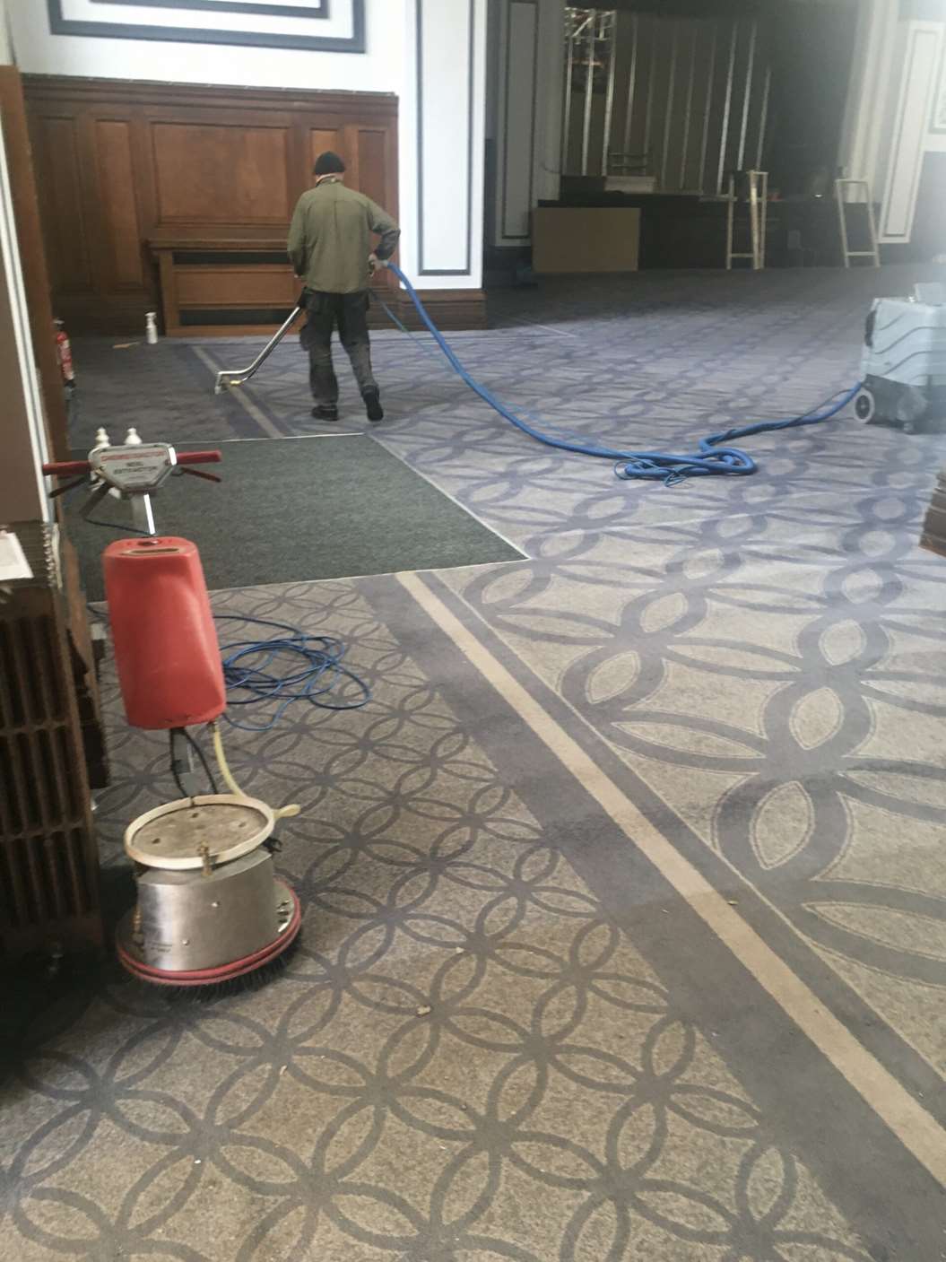 The carpets we where cleaning was located in the master ballroom which have just been renovated, we carried out a full 6 stage deep clean using Woolsafe products removing dry soil, chewing gum, candle wax and staining such as, wine and coffee. the carpets where Axminister, 100% wool with a beautiful bespoke design.