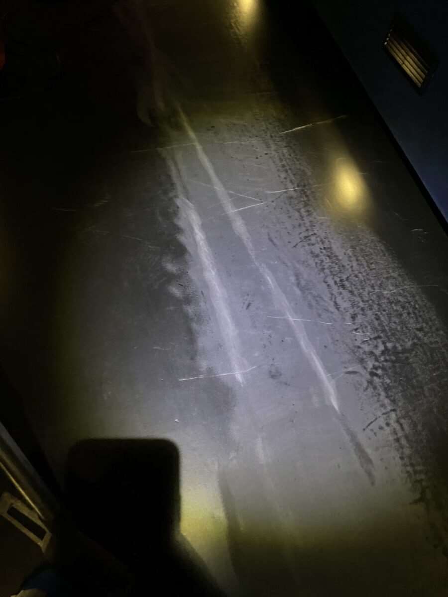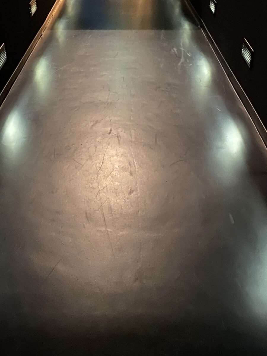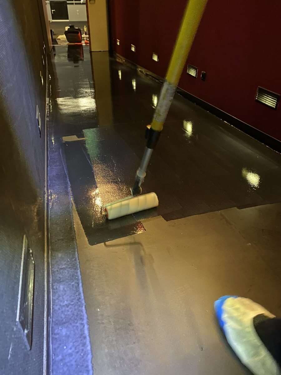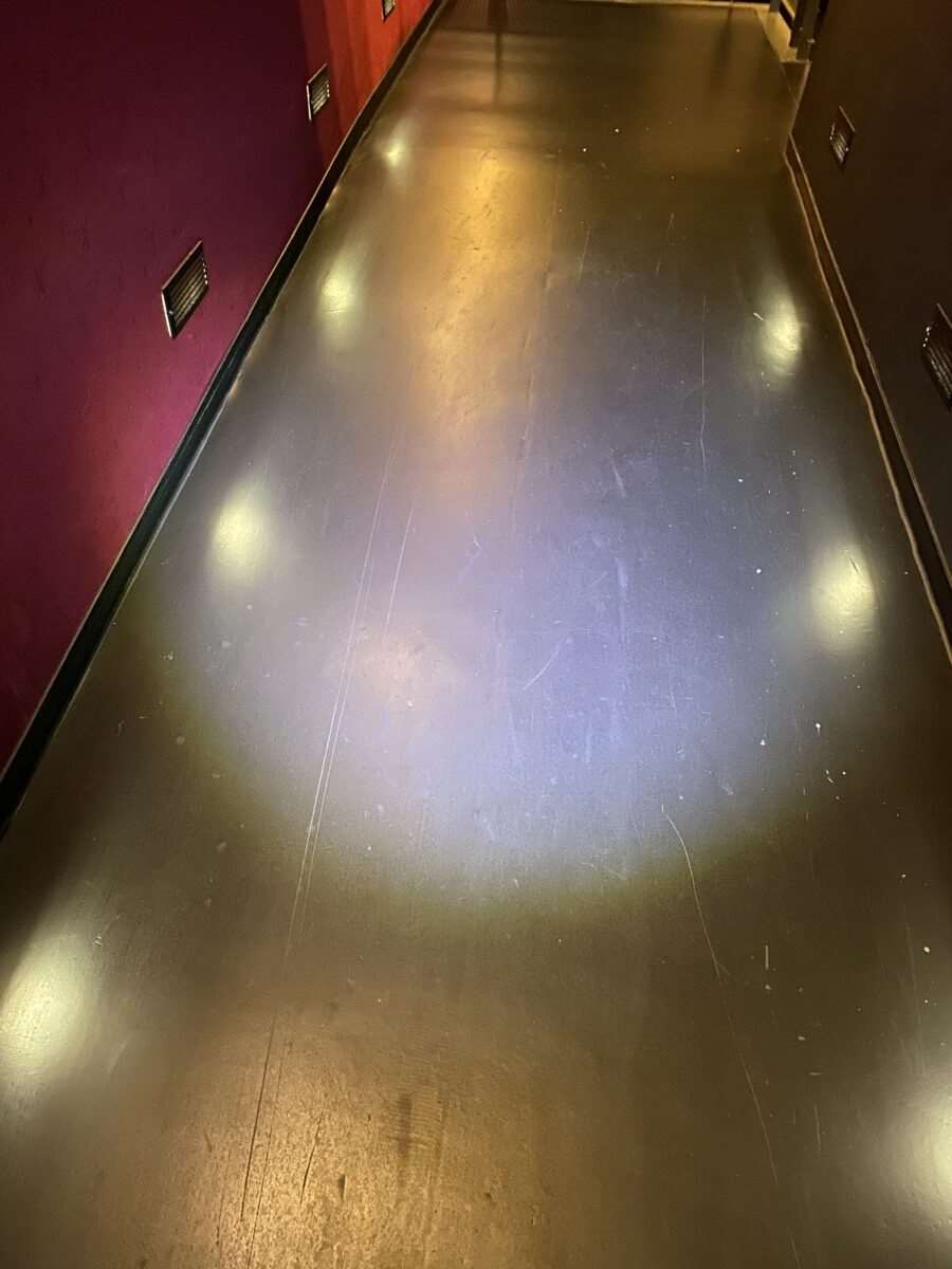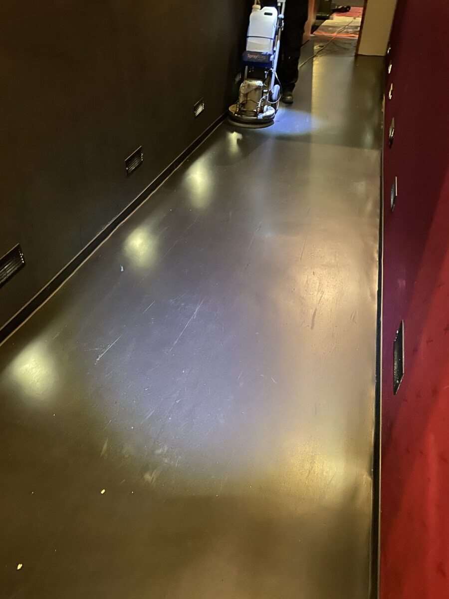 The vinyl had been unfortunately damaged and badly scratched during the seating installation. We had to do a full restoration on most of the floors within the cinema screens, this included walkways and access ramps which are much harder to work on because of the incline of the ramp.